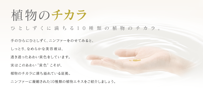 タイ北部やミャンマーの森林地帯に自生する植物。タイの自生地域では、若さと健康を保つ伝承薬として古くから珍重されてきました。大きな塊状の根には、女性ホルモン様作用をもつイソフラボン、ミロエステロール、デオキシミロエステロールなど、植物性エストロゲンを豊富に含みます。ホルモンバランスを整えることで細胞を活性化、老化防止や美肌作用が期待されます。