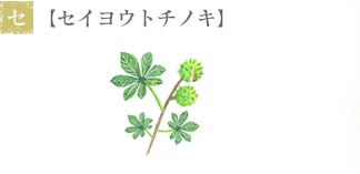 バルカン半島や西アジアの山地が原産とされる落葉樹で、日本ではフランス語のマロニエとしてお馴染みの植物。英名ホース・チェスナッツの由来は、馬などの家畜類に咳止めとして実を食べさせたことにあります。主成分でサポニン系の複合体であるエスシンは優れた抗炎症作用をもち、ヨーロッパでは医薬品として用いられる成分。末梢血管への浸透性があり、血行を促進する作用も期待されます。