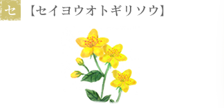 ヨーロッパやアジアの温帯地域に自生する多年草の植物で、夏には黄色く小さな花を咲かせます。花が開花するのが聖ヨハネの祭日(6月24日)の頃であることから、英名ではセントジョーンズ(聖ヨハネの)ワート(草)と呼ばれています。主な成分は、ヒペリシン、フラボノイド、タンニンなどで、神経を鎮静する作用や、抗菌・抗ウィルス作用、収れん作用などがあるとされます。